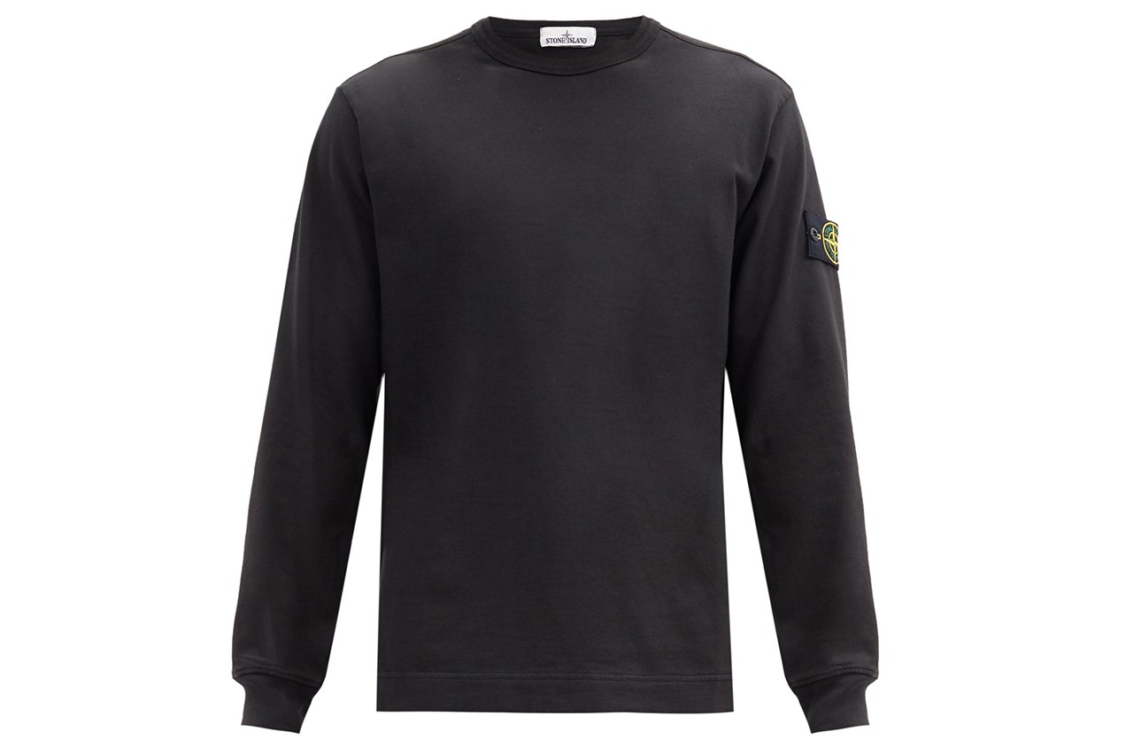스톤 아일랜드 로고 패치 코튼 저지 스웨트셔츠